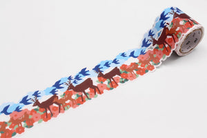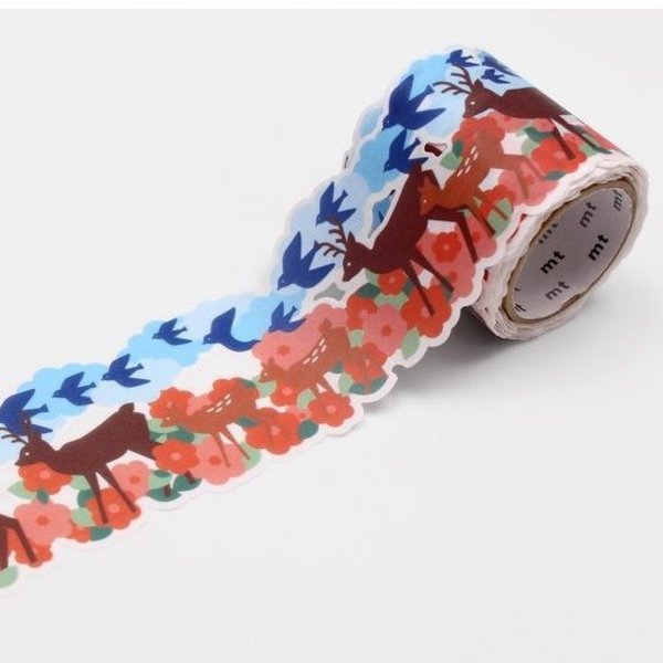 This washi tape design is a part of the MT Fab Collection and as soon as you unravel that first few inches you instantly see why. The die cut edge creates a fun dynamic to anything that you adorn with this tape. The precious scene of a deer family and a flock of birds gliding through the forest with the cut edge is indeed fab! This tape is nice and wide making it a good option for sealing larger envelopes or sealing the edges of a package.