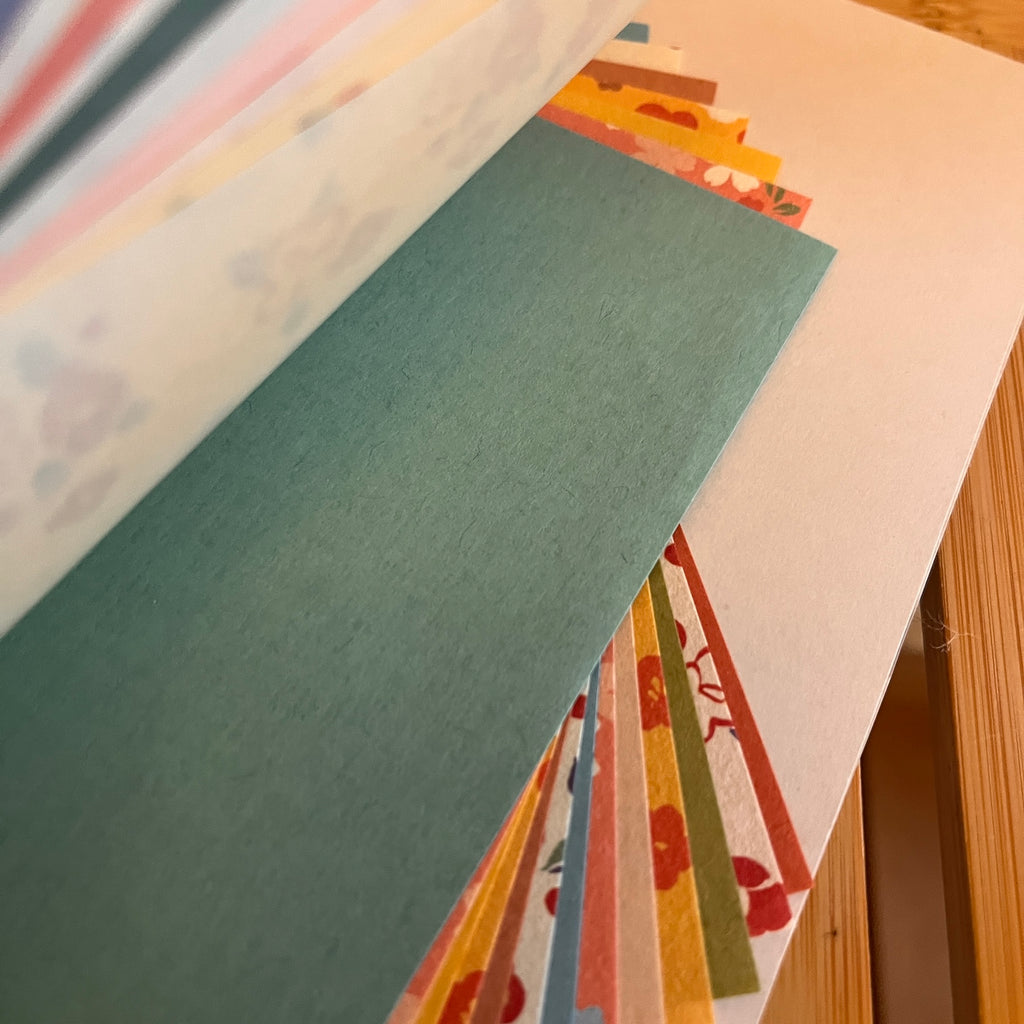 You can enjoy cute and simple Mino Washi in the colors and patterns of cherry blossoms, Japanese apricot, and camellia, all flowers of Japan, in one package. The unique Mino-Washi paper is soothing to touch and can be used for origami or other paper arts and crafts.