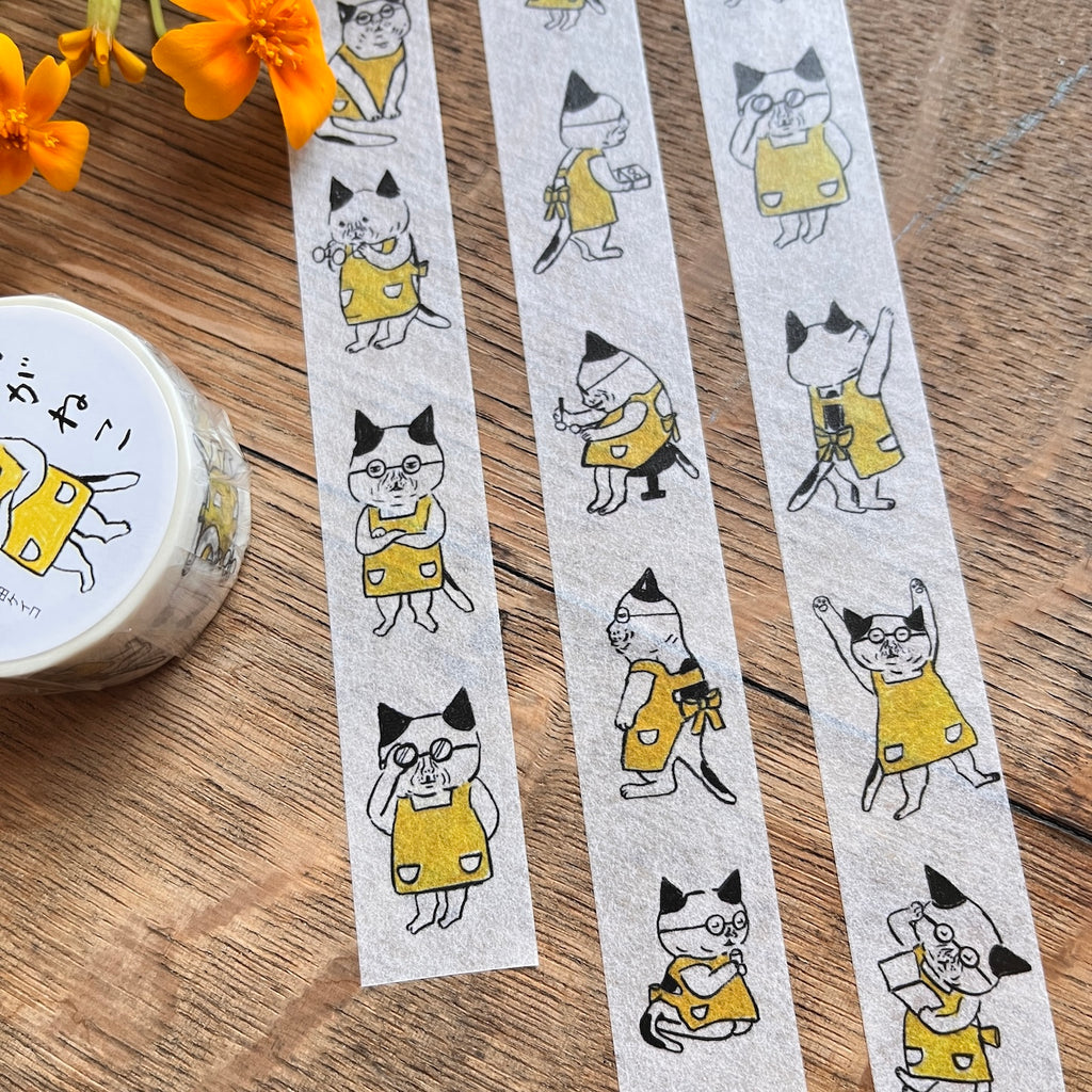There is something about a smart cat in glasses that just warms the heart and makes one want to giggle. This fun illustration by Keiko Shibata features a cat fussing around with their glasses and then finally resting them on its face. Keep things light around the office and use this tape to spread some cheer.