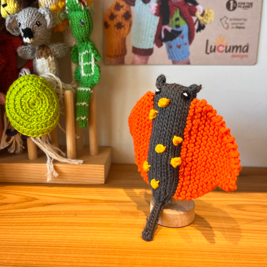By choosing organic cotton Lucuma supports organic farming which gives bees and pollinators a chance to thrive. Each finger puppet helps keep 1/2 square foot of land free of toxic chemicals promoting a clean environment that benefits us all.